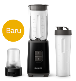 • Aksesoris: penyaring, tabung pemotong (350 ml), tumbler/ botol on the go (0.6 L)